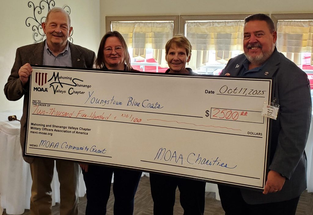 Military Officers Association of America (MOAA) – Mahoning and Shenango Valleys Chapter met Friday October 17 at A La Cart Catering in Canfield, Ohio to donate $2500 to the Youngstown Blue Coats.